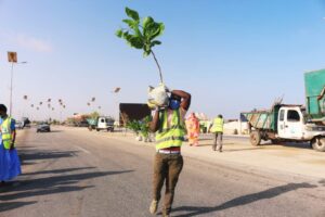 جهة نواكشوط تنظم حملة لتشجير طريق المطار/صور