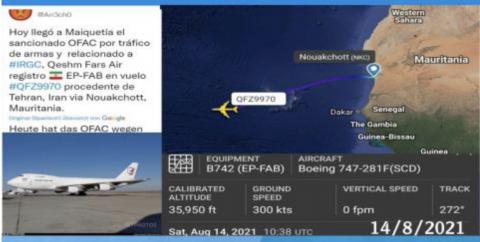 أعلنت هيئة تابعة لوزارة الخزينة الأمريكية وتعنى بمراقبة الشركات والهيئات الأجنبية التي تخضعها حكومة الولايات المتحدة لعقوبات اقتيادية، أنه تم رصد طائرة نقل إيرانية في رحلة بين إيران وفينزويلا مرورا بمطار أم التونسي الدولي بنواكشوط.