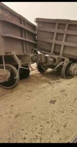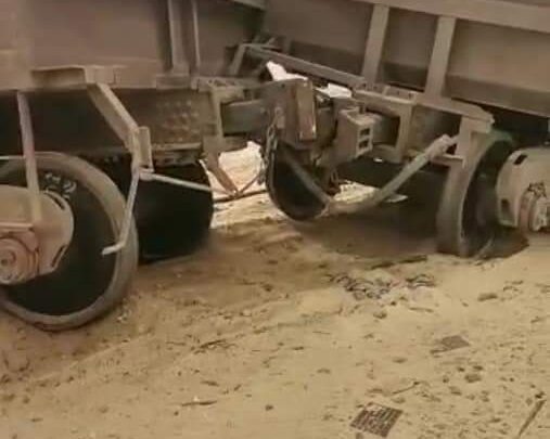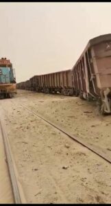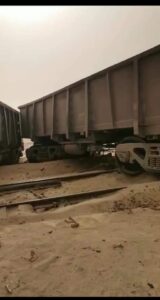 القطار V3 ينعرج عن السكة الحديدة اليوم عند مدخل لبير في انواذيبو وخسارة قرابة 30 عربة