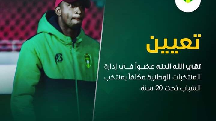 الاتحادية الموريتانية لكرة القدم تعلن عن تعيين اللاعب الدولي السابق مع المنتخب الوطني تقي الله الدنه، الذي أعلن اعتزاله حديثاً،