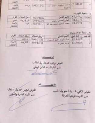 أعلنت الشرطة الوطنية عن أسماء الناجحين في مسابقة اكتتاب8 ضباط المهندسين ،وقد أظهرت اللائحة نجاح سيدتين في تخصص البيولوجيا الجزيئية واحد من المسابقة وهما مربم ابوبكر الوافي و رقية محمد سلمان