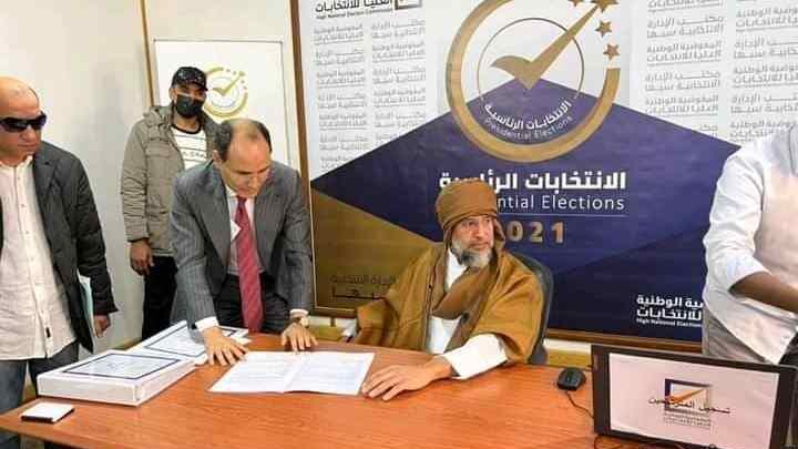 وقال عضو المفوضية عبد الحكيم بالخير، إن «سيف الإسلام قدم أوراق ترشحه لرئاسة ليبيا بمكتب مفوضية الانتخابات في مدينة سبها»جنوبي البلاد.