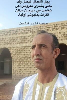 بمناسبة إشراف فخامة رئيس الجمهورية السيد: محمد ولد الشيخ الغزواني، اليوم في مدينة وادان على انطلاق مهرجان ( وادان) وتأييدا ومساندة لبرنامج الرئيس قام رجل الأعمال المعروف السيد : رجل الأعمال فيصل ولد بالي مدير شركة التأمينات (ريم) بشراء كافة معروضات جناح مخيم مدينة تشيت التاريخية في مهرجان. ودان بمبلغ مليوني أوقية ، قبل ان يوزعه على السلك الدبلوماسي وقال ولد بالي في تصريح له بأنه قام بهذه المبادرة دعما للجهود التنموية الكبيرة التي يقوم فخامة رئيس الجمهورية السيد: محمد ولد الشيخ الغزواني ، والرامية إلى دعم قاطرة تنمية البلاد باعتبار انها تمثل رافعة يجب على الجميع اتباعها من أجل وطن مزدهر وقادر على مقاومة إكراهات الحياة