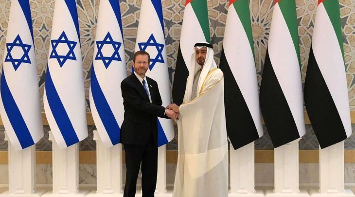 وأعرب رئيس إسرائيل عن شكره لبن زايد “على حفاوة الاستقبال وعلى الضيافة الكريمة في قصره”.