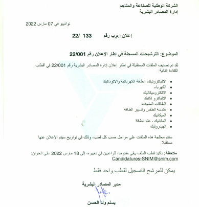 SNIM: سنعالج ملفات المترشحين في المسابقة على مراحل