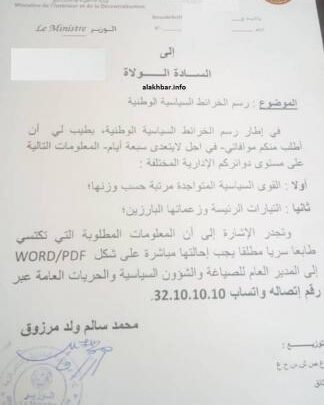 ونبه الوزير الولاة في الرسالة حصلت الأخبار على نسخة منها إلى أن هذه المعلومات “تكتسي طابعا سريا مطلقا”.