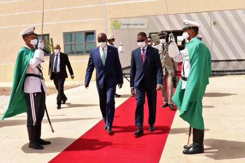 ورافق الوزير الأول عدد من المستشارين والمكلفين بمهام في الوزارة الأولى و السفير الموريتاني في المغرب و رئيس اتحاد أرباب العمل.