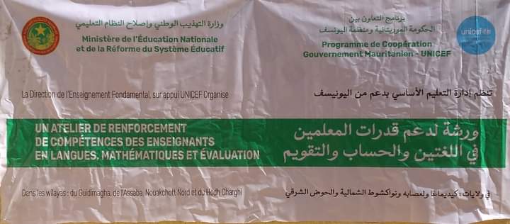 نظمت وزارة التهذيب الوطني من خلال إدارة التعليم الأساسي و بدعم من اليونسف ورشة لدعم قدرات المعلمين في اللغتين و الحساب و التقويم بدار النعيم لمجموعة من المعلمين الميدانيين