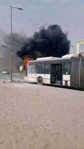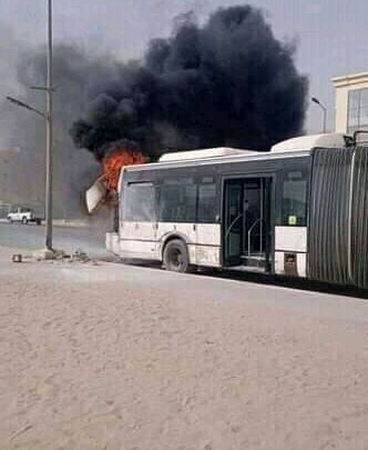 شب حريق قبل قليل فى احد باصات النقل الخاصة بالجامعة