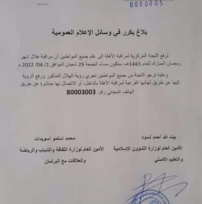 الرئيسية/ثقافة ودراسات/بلاغ من اللجنة المركزية لمراقبة الأهلة بخصوص رمضان/وثيقة ثقافة ودراسات بلاغ من اللجنة المركزية لمراقبة الأهلة بخصوص رمضان/وثيقة اظهر المزيد شاركها فيسبوك X واتساب مشاركة عبر البريد طباعة