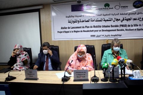 أشرفت رئيسة جهة نواكشوط السيدة فاطمة عبد المالك صباح اليوم الخميس 14 إبريل 2022 على افتتاح ورشة الإنطلاق الرسمي لمخطط الحركية الحضرية المستديمة (PMUD) المنظمة من طرف مشروع دعم الجهة في مجال التنمية المستدامة الصامدة والمتوازنة (ARENDDRE)، وذالك بحضور والي نواكشوط الغربية و ممثلة الإتحاد الأوروبي والمدبرة العامة للشركة الوطنية للنقل وممثل عن سلطة تنظيم النقل الطرقي وبعض الفاعلين في القطاع.