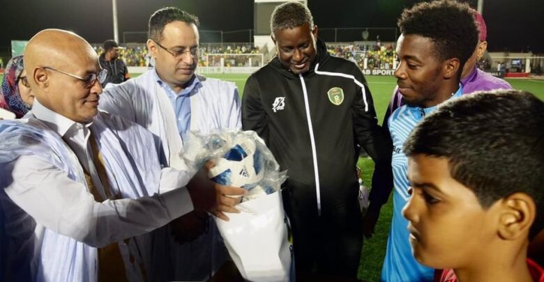 وتم توزيع المعدات الرياضية بملعب شيخا ولد بيديا بين شوطي المباراة التي جمعت بين “نادي كينغ نواكشوط” ونادي “تانت فيلاج روصو” ضمن تصفيات كأس “رئيس الجمهورية” لكرة القدم، وانتهت بفوز الأول بثلاثية نظيفة.