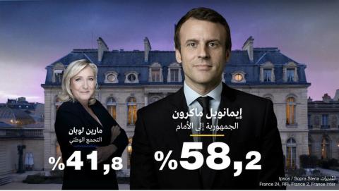 وحصلت منافسته، مرشحة اليمين المتطرف مارين لوبان، على %41.8 من أصوات الناخبين الفرنسيين.