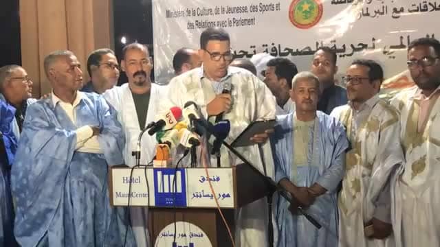 كما انها فرصة لأشكر باسم التجمع السلطات العليا المتمثلة في الرئيس والحكومة على الجهود التي يبذلونها- رغم الملاحظات التي سنذكرها في حينها- الجهود التي منها زيادة ميزانية صندوق دعم الصحافة المستقلة،والمصادقة على انشاء دار للصحافة،وتخصيص مبلغ مالي لبناء الصرح.
