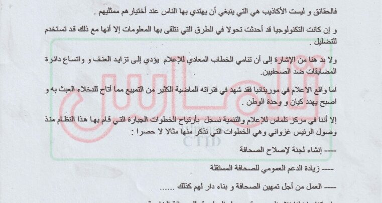 اما واقع الاعلام في موريتانيا فقد شهد في فتراته الماضية الكثير من التمييع مما أتاح للدخلاء العبث به و اصبح يهدد كيان و وحدة الوطن .