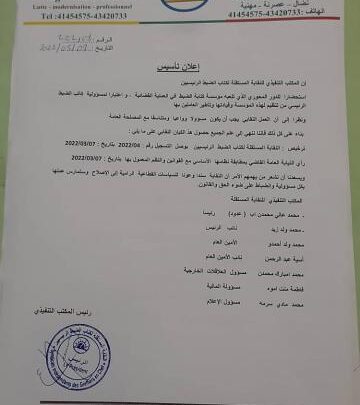 وقد جاءت تشكيلة النقابة كالتالي:
