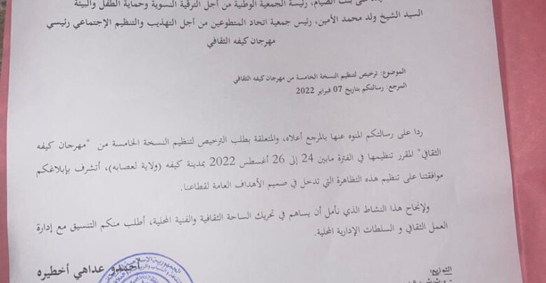 وزارة الثقافة : ترخيص “مهرجان كيفه للثقافة” النسخة الخامسة / وثيقة