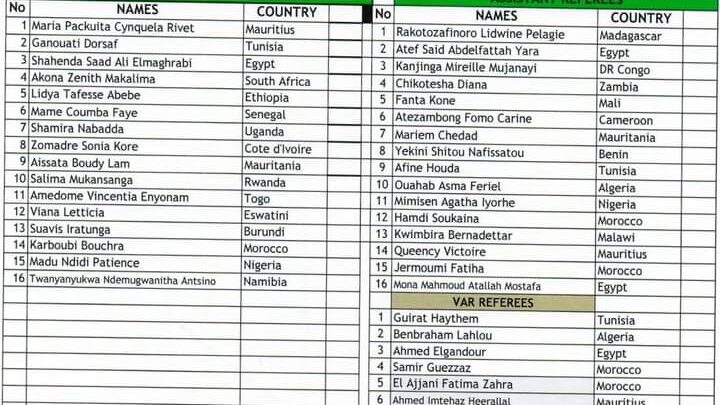 القائمة الكاملة لحكام كأس امم افريقيا للسيدات المغرب 2022
