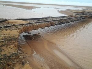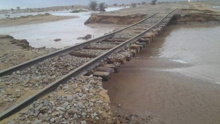 توقف قطار اسنيم الذي ينقل خامات الحديد من ازويرات الى انواذيبو و ذلك لتعطل السكة الحديدية بسبب السيول الجارفة في "بطحة شــار" الواقعة بين أتواچيل و شومـ