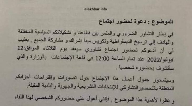 وأكد التعميم أنه يتعين على الولاة وضع آلية لمتابعة كافة الأشغال التي سيقام بها، والمتعلقة بتنفيذ الأعمال في المساحات القابلة للزراعة، وإشعار الوزيرين أولا بأول بتقدم الأشغال.