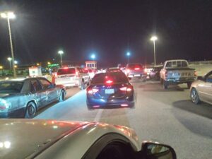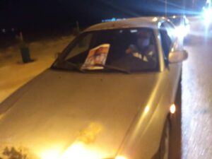 هذا الاستقبال كان عند بوابة مطار أم التونسي حيث استقبلوه عند وصوله حيث انطلقت الزغاريت و الهتافات كما نظموا مسيرة بالسيارة حتى منزل العمدة