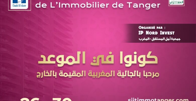 تنظم جمعية أمل المستقبل وشركة IP NORD INVEST، في مدينة طنجة بالمغرب النسخة الأولى للمعرض الدولي للعقار “SIIt immo2022” ، تحت شعار “طنجة آفاق واعدة للاستثمار”، في الفترة من 26 إلى 30 يوليوز الجاري، وذلك تخليدا للذكرى 23 لعيد العرش المجيد.