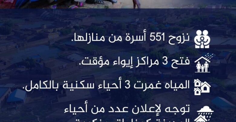 كيهيدي: نزوح 551 أسرة وفتح 3 مراكز إيواء و مناطق منكوبة
