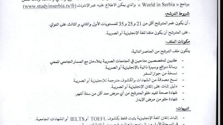 وزارة التعليم العالى تعلن عن ثلاث منح الى صربيا / وثيقة