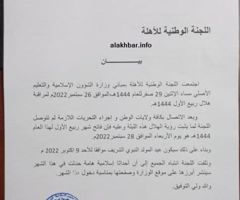 لجنة الأهلة تعلن : الأربعاء فاتح ربيع الأول