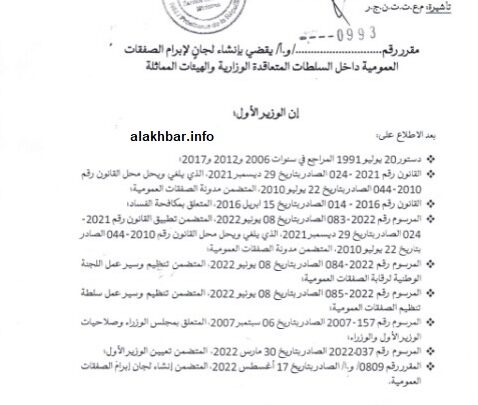 يقلص عدد لجان الصفقات العمومية من 27 الى 20 …مقرر من الوزير الأول