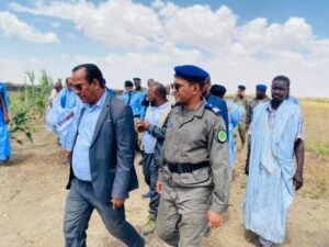 جولة وزير الزراعة يحي احمد الوقف صباح اليوم بمزرعة العافية النموذجية واقليك بومسعود بمقاطعة امرج ومزرعة المبروك النموذجية بالنعمة في اطار زيارة يؤديها وزير الزراعة هذه الأيام لولاية الحوض الشرقي لتفقد بعض المصالح التابعة لقطاعه بالولاية