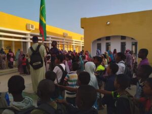 الحاكم المساعد لدارالنعيم تشارك تلاميذ مدرسة أسماء النشيد و رفع العلم في صباحية الجمعة /صور