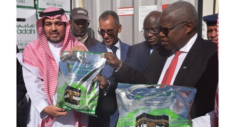 تسلم والي نواكشوط الجنوبية السيد أنياك جبريل حمادي صباح اليوم الثلاثاء بميناء نواكشوط المستقل المعروف بميناء الصداقة كمية من لحوم الأضاحي مقدمة من طرف المملكة العربية السعودية لصالح الأسر الهشة في نواكشوط.
