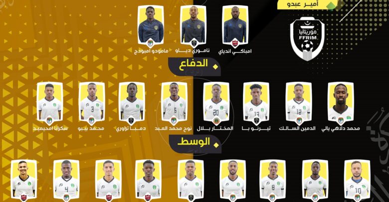 ووفق ما أعلن الاتحاد الموريتاني لكرة القدم ضمت القائمة 25 لاعباً، بينهم عدد من لاعبي الخبرة، إضافة إلى العديد من العناصر الشابة في مختلف المراكز.