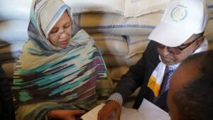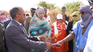 معالي المفوضة أشرفت كذلك على تدشين بنك للحبوب في المدينة بالتعاون مع مندوبية تآزر، كما سلمت تعاونية نسوية مبلغ مليون أوقية في إطار برنامج تمويل الأنشطة المدرة للدخل التي تنفذها المفوضية.