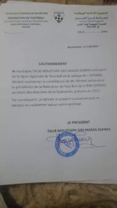 15عصبة جهوية و 9 أندية من الدرجة الأولى تعلن دعم أحمد ولد يحيى في الانتخابات المقبلة/ وثائق