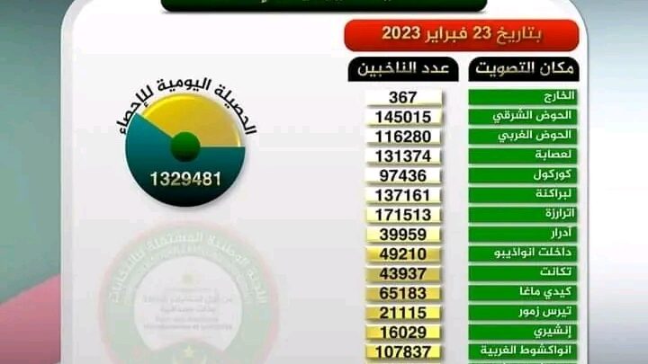 اللائحة الانتخابية تقترب من مليون و أربعمائة ناخب و اترارزة تتقدم على الولايات بفارق معتبر – ارقام