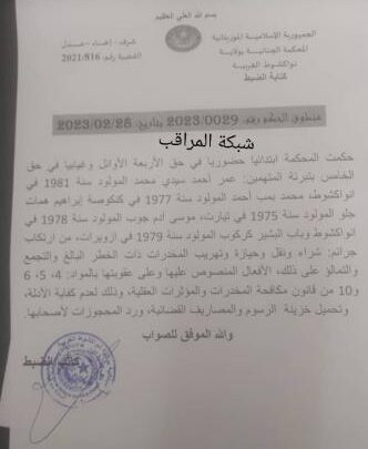 أصدرت المحكمة الجنائية بنواكشوط الغربية حكما ببراءة مجموعة من المتهمين في قضية مخدرات ذات الخطر البالغ ويتعلق الامر ب: