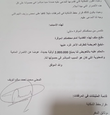 دعوى قضائية ضد رئيس اللجنة الوطنية للصفقات العمومية و مطالبته بتعويض20 مليون اوقية-وثيقة