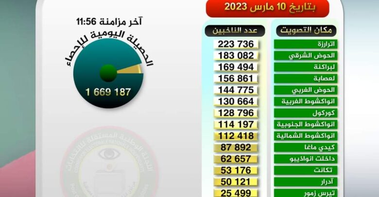 أعلنت اللجنة المستقلة للانتخابات صباح اليوم وصول عدد المسجلين 1669187 ناخبًا، على عموم ولايات الوطن، فضلا عن الجاليات بالخارج.