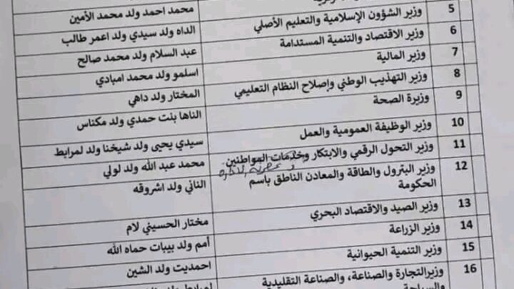 موريتانيا : اسماء تشكلة الحكومة الجديدة
