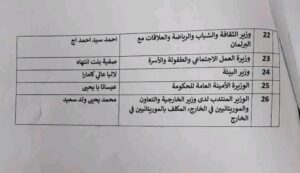 وجاءت تشكيلة الحكومة الجديدة على النحو التالي: