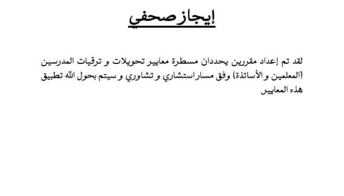 إيجاز من وزارة التهذيب حول مسطرة معايير لترقيات وتحويلات المدرسين