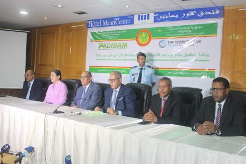 أشرف وزير الزراعة السيد امم بيباته، صباح اليوم ، على افتتاح ورشة انطلاق مشروع دعم التنمية والابتكار في القطاع الزراعي بموريتانيا PADISAM، رفقة معالي وزير المالية السيد اسلمو ولد محمد امبادي، والممثلة المقيمة للبنك الدولي في موريتانيا السيدة كريستينا إيزابيل دي سانتوس.