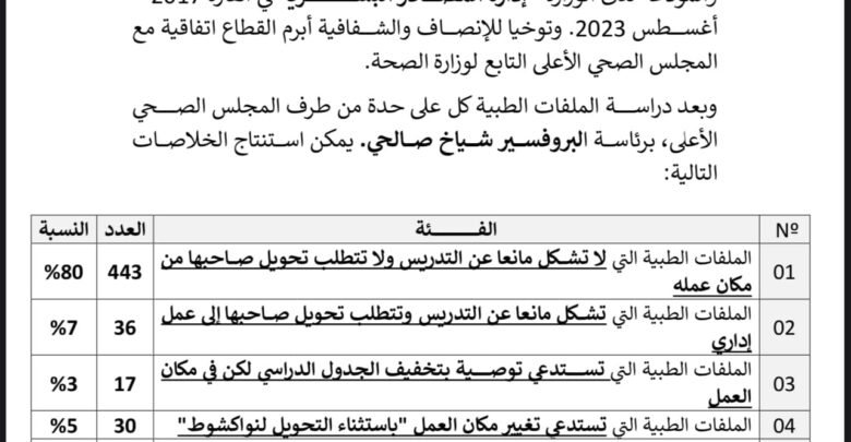 ولفتت الوزارة إلى أنها توصلت لهذه المعطيات بعد دراسة الملفات الطبية من طرف المجلس الصحي الأعلى التابع للوزارة