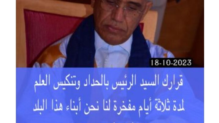 قرارك السيد الرئيس محمد ولد الشيخ الغزواني بالحداد وتنكيس العلم لمدة ثلاثة أيام، جرّاء الجرائم التى يرتكبها العدو الصهيوني ضد أهلنا فى غزًة، والتى بلغت ذروتها فى ارتكاب مجزرة المستشفى المعمداني، التى راح ضحيتها خمسمائة شخص، تطايرت اشلاؤهم، فى كل مكان، وتقطّعت أوصالهم إربا إربا… فمن ينظر المنصة التى تكوّمت من أشلاء الأطفال، والتي تكلم منها مسؤول وزارة الصحة والطًاقم الطبي معه، سينطلق ضميره حيا من هذه المنصة كذلك، هذا القرار، سيدي الرئيس الذي اتخذت، نابع من الضمير الحي الذي حباك الله به، وجعله كذلك جنُّة لك دون المخاوف، مفخرة لنا نحن أبناء هذا البلد القصي، فقد أثبت، دون مراء، أن بعدنا الجغرافي من غزّة، لايضاهيه إلا قرب ضمائرنا منها، دون استثناء، ولن أطيل فى تدبيج لآلئ اللغة وجواهرها وخرزها، بالاشادة بهذه المنقبة، الضمير الحي، زمن موت الضمائر، فهذا القرار يجلو ،بصفاء، منبتك وتكوينك وتربيتك، وهو ثالوث يورث حسن الأحدوثة… وأول ثماره، هذا الضمير الحي، الذي كان رائدك في اتخاذ هذه الخطوة الواثقة الميمونة…
