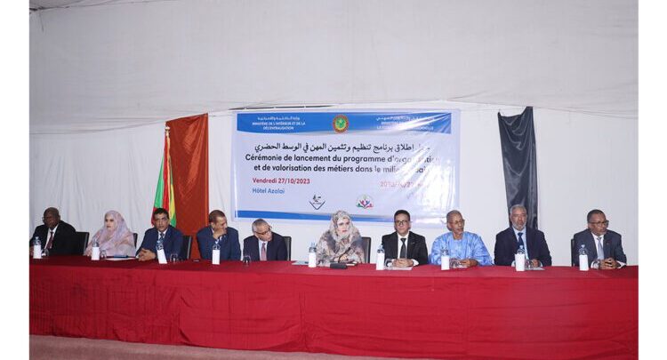 وكان الأمينان العامان لوزارتي الداخلية واللامركزية و التشغيل والتكوين المهني على التوالي السادة: محمد محفوظ ابراهيم احمد، و محمد سالم ولد بوخريص، قد وقعا مؤخرا اتفاقية شراكة حول برنامج تنظيم وتثمين المهن في الوسط الحضري.