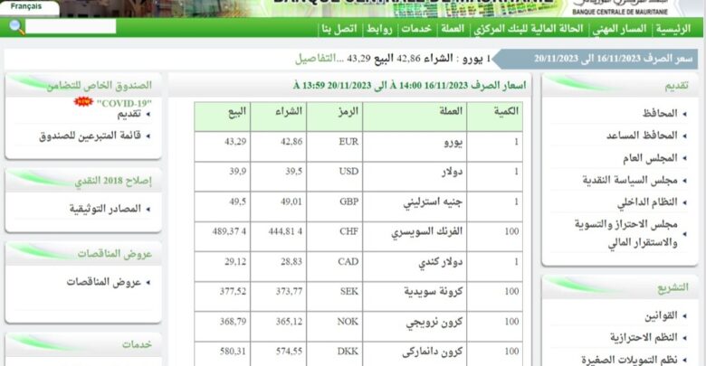 سعر الأوقية الموريتانية مقابل العملات الرئيسية منتصف مارس الماضي وفق البنك المركزي الموريتاني