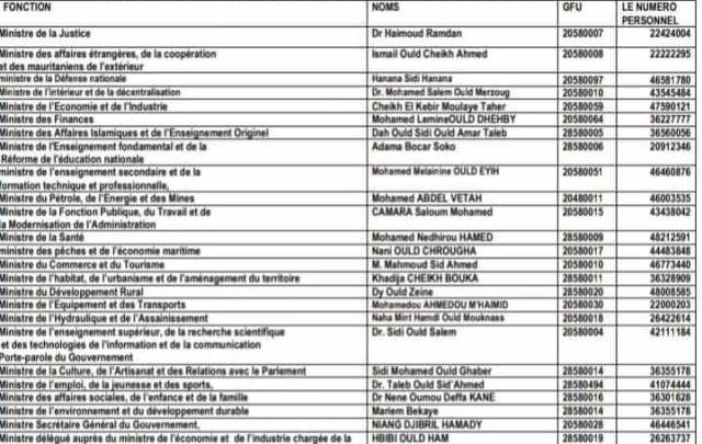 اللائحة تضم أرقام هواتف معظم الوزراء الشخصية وأرقام العمل.