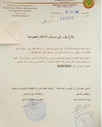 دعت لجنة مراقبة الأهلة كافة المواطنين لتحري رؤية هلال شهر شعبان 1445 مساء السبت القادم.